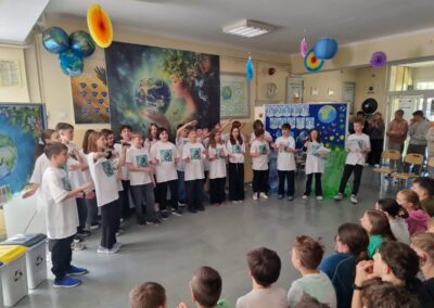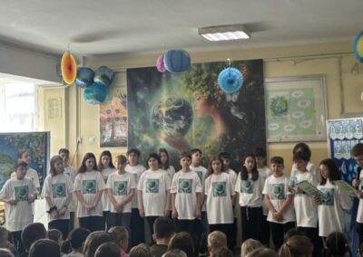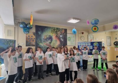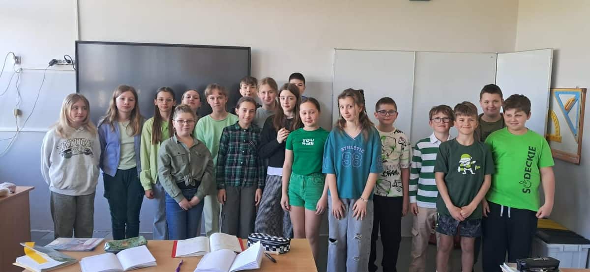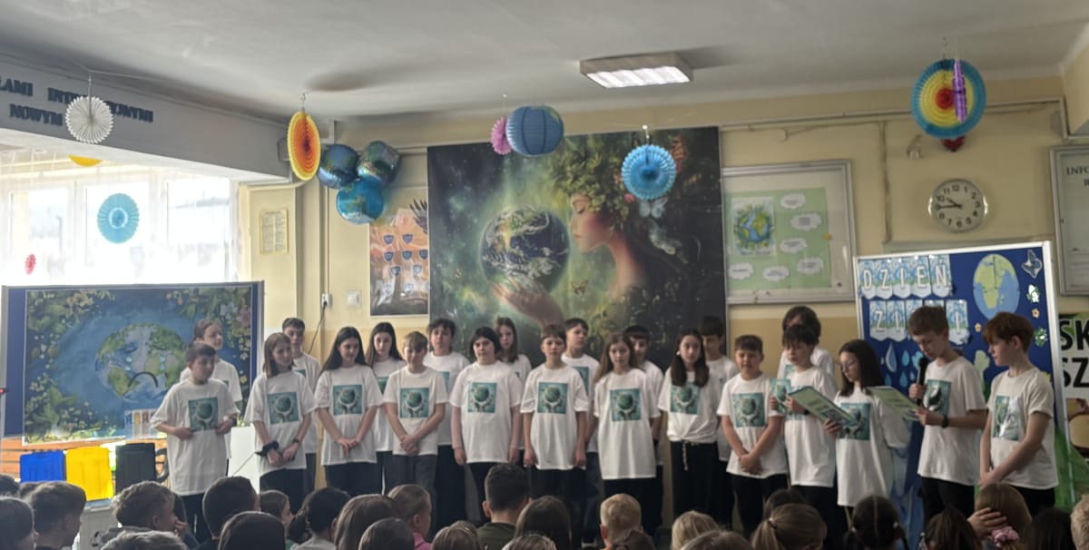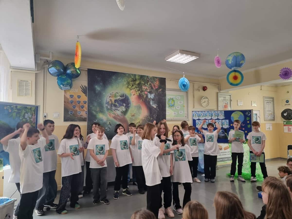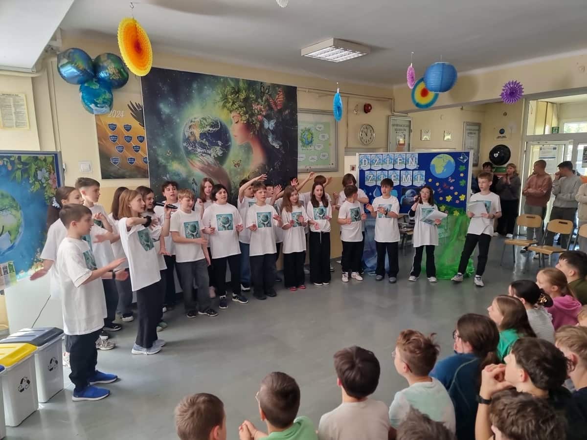 Na dzisiejszym apelu z okazji Dnia Ziemi klasa 5b chciała zwrócić uwagę wszystkim uczniom że Ziemia byłaby oazą piękna i spokoju, gdyby nie my - ludzie. Zadymiliśmy ją, zaśmieciliśmy, niszczymy zieleń, zatruwamy wodę i glebę, nie pozwalając spokojnie żyć roślinom, zwierzętom. Co roku obchodzimy Święto Ziemi aby los naszej planety nie był nikomu obojętny. Ochrona środowiska jest bardzo ważna. Rok w rok niezmiernie bogata przyroda staje się uboższa. Niektóre gatunki roślin i zwierząt możemy dzisiaj podziwiać już tylko na obrazkach. Wielu gatunkom grozi wyginięcie. Jest to następstwem często nieprzemyślanych działań człowieka. Okazuje się, że zniszczenia dokonane w przyrodzie przez człowieka zaczynają zagrażać samemu człowiekowi. Klasa 5b w tym dniu pragnie mieć swój udział w obronie naszej planety. Kochajmy naszą Ziemię, na której rośniemy i która nas żywi.