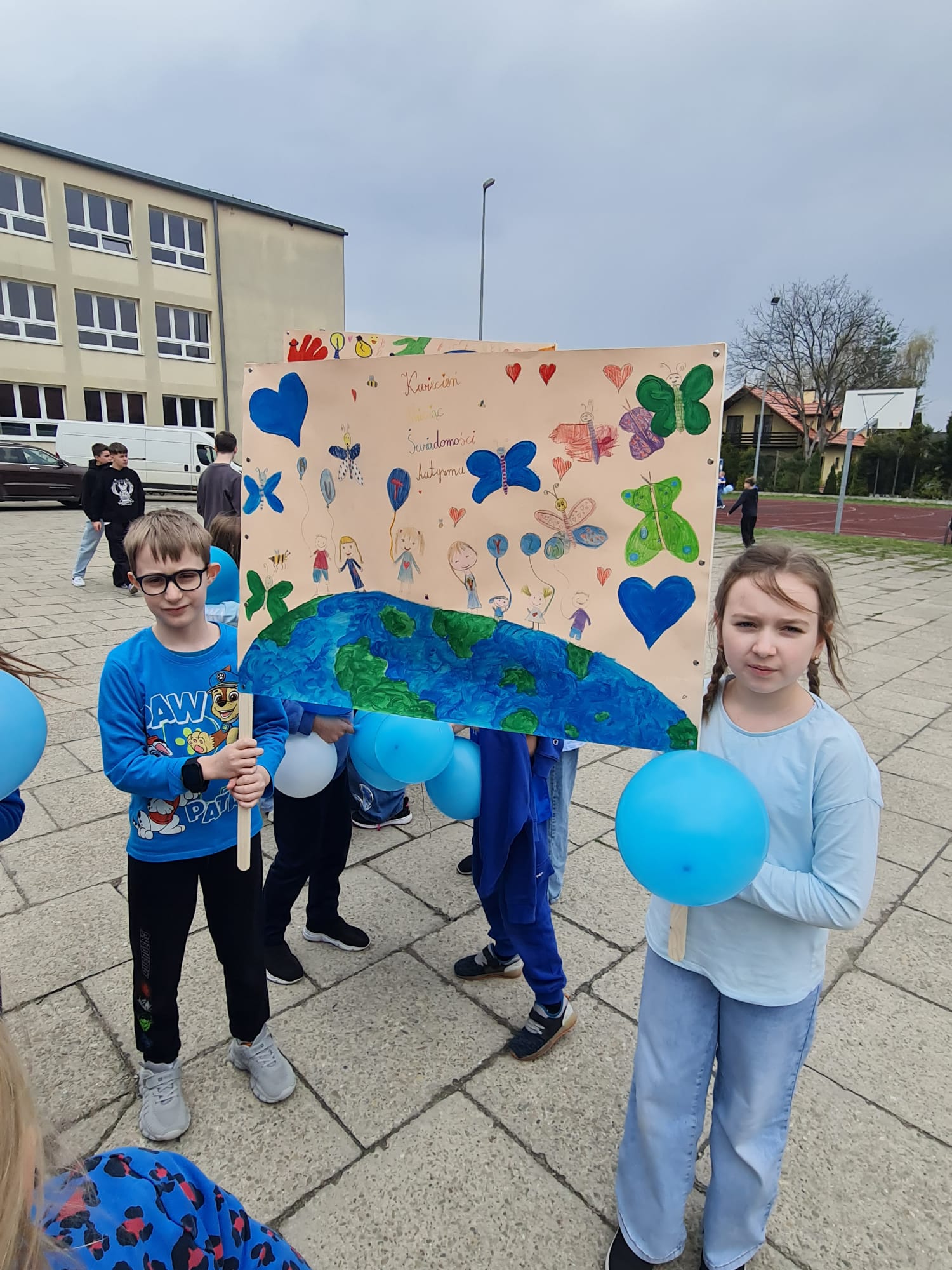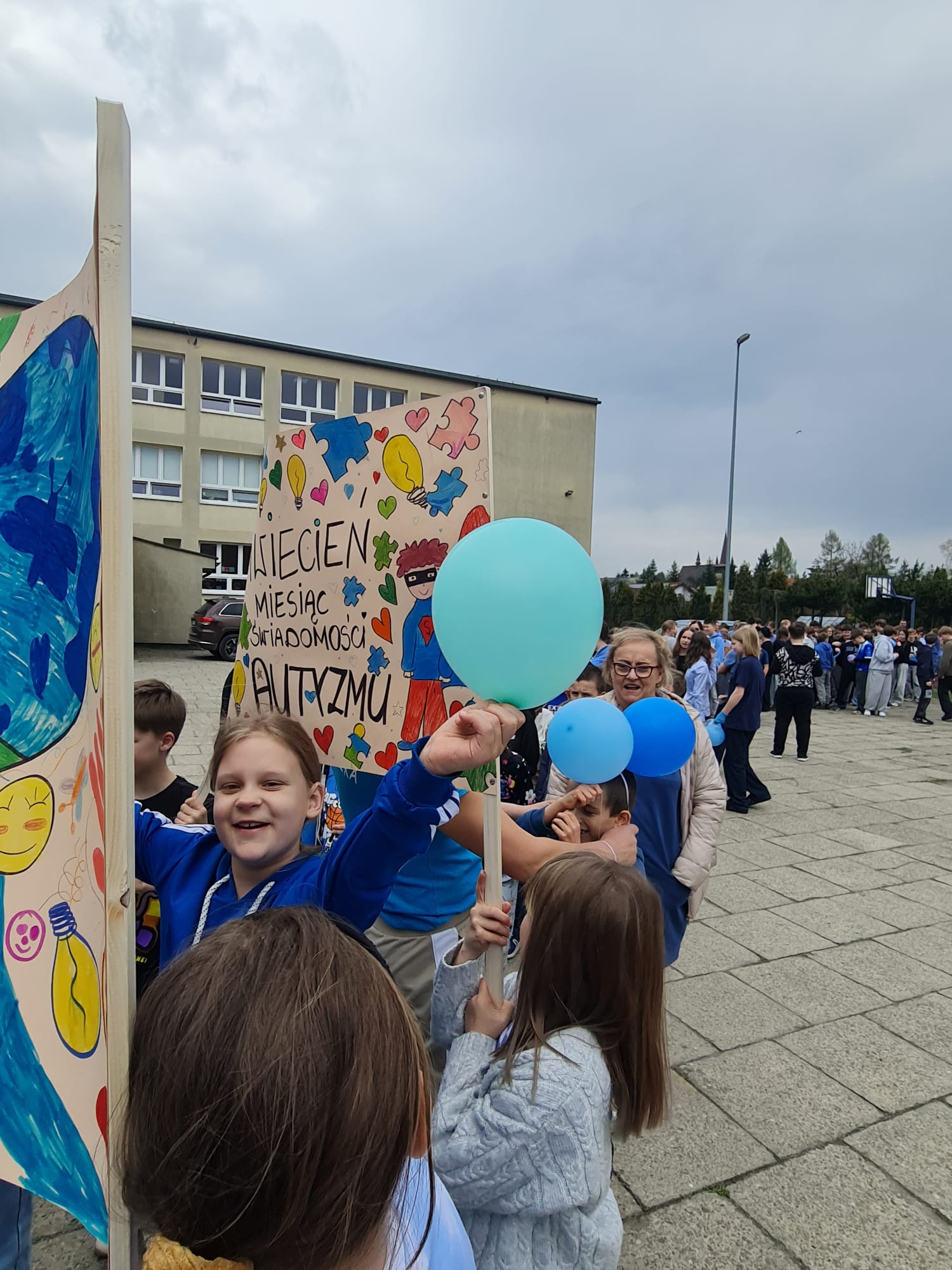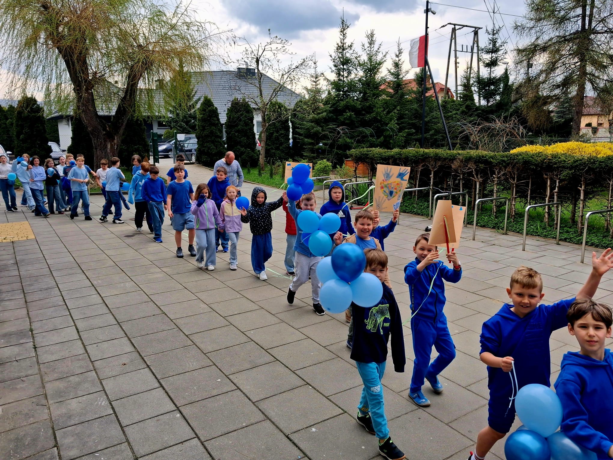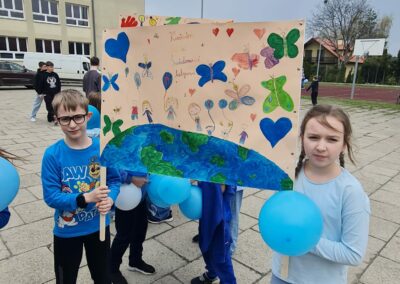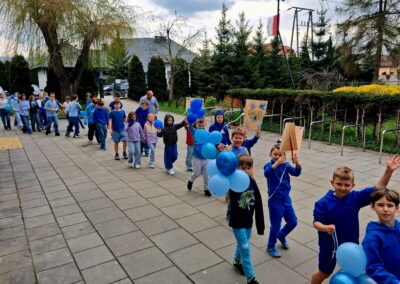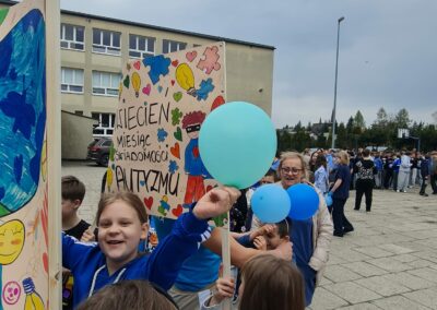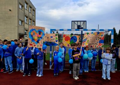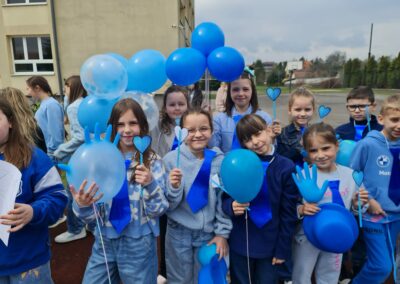 Jak co roku zorganizowaliśmy też Niebieski Marsz wokół szkoły, w którym wzięła udział cała społeczność szkolna. Razem pokazaliśmy, że pamiętamy, wspieramy i chcemy lepiej rozumieć osoby w spektrum autyzmu.