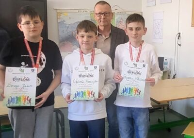 Naszą szkołę reprezentował Przemysław Ogórek z klasy 5b, który zaprezentował bardzo wysoki poziom gry i ogromne zaangażowanie. W trakcie turnieju rozegrał 7 rund, z których aż 5 zakończył zwycięstwem, 1 partię zremisował, a tylko 1 przegrał. Dzięki tak znakomitemu wynikowi zdobył II miejsce, uzyskując tytuł wicemistrza Nowego Sącza.