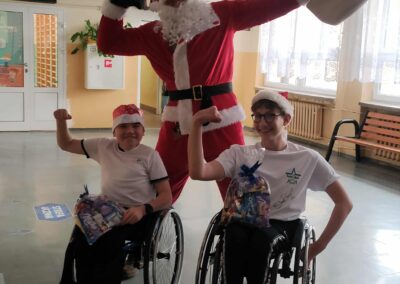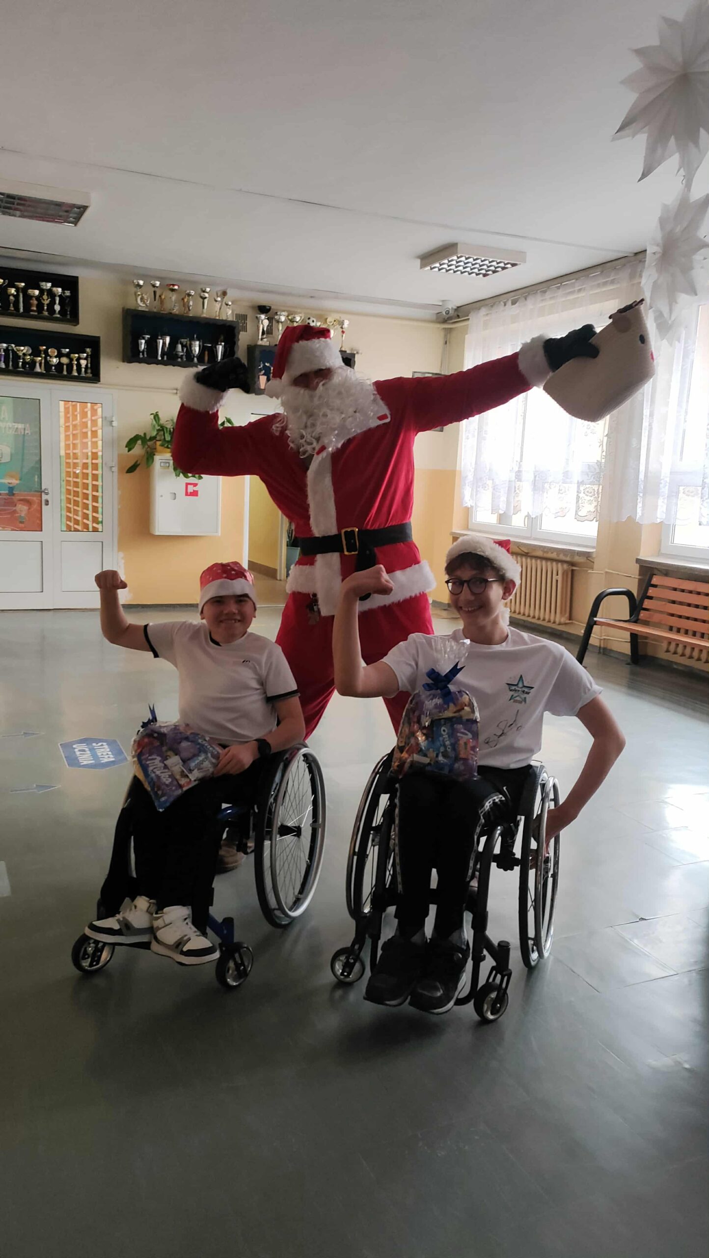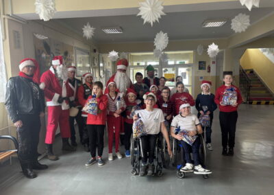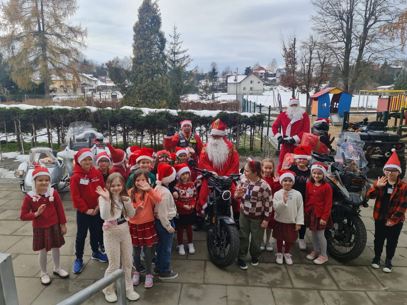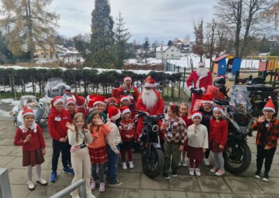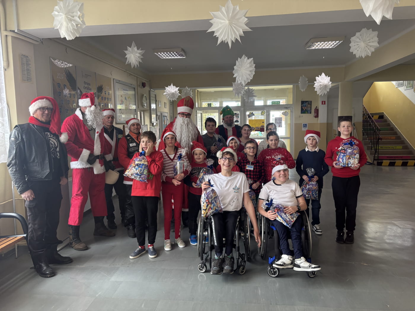 Tego dnia w szkole pojawili się także wyjątkowi goście – „Motomikołe” z organizacji Motosacz, którzy przyjechali na motorach do naszej szkoły i z wielkimi sercami i obdarowali uczniów z klas integracyjnych świątecznymi prezentami. Ich wizyta sprawiła dzieciom ogromną radość i dodała całemu wydarzeniu prawdziwie magicznego charakteru.
