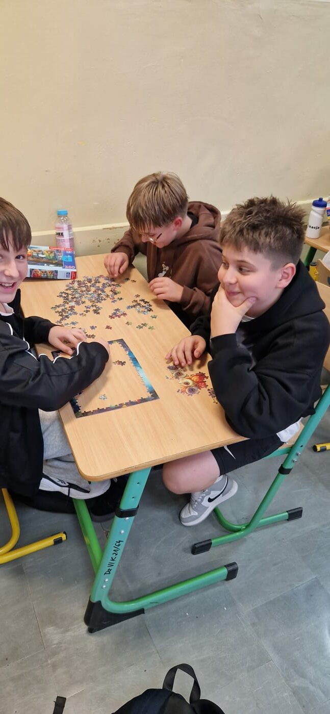 Każda klasa wybrała trzech reprezentantów, którzy zmierzyli się z niełatwym zadaniem – jak najszybszym ułożeniem otrzymanego obrazka. Emocji, zaangażowania i świetnej zabawy nie zabrakło, a rywalizacja była naprawdę wyrównana.