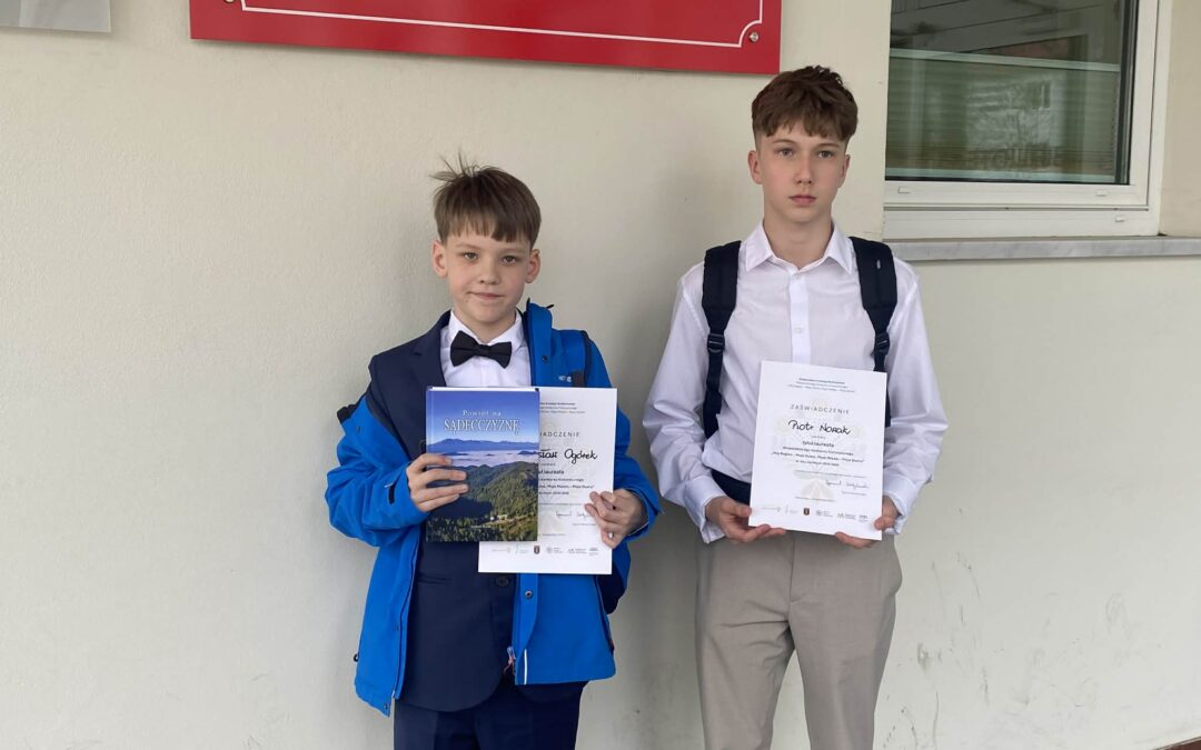 Dwóch uczniów naszej szkoły – Przemysław Ogórek z klasy VB oraz Piotr Nowak z klasy VIB – zostało laureatami Wojewódzkiego Konkursu Historycznego „Mój Region – Moja Duma, Moje Miasto – Moja Duma”.