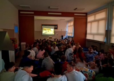 Podczas wcześniejszego głosowania uczniowie sami zdecydowali, jaki film chcą obejrzeć. Zwycięzcą okazał się kultowy film animowany Shrek 2 – pełna humoru i wzruszeń opowieść o przygodach zielonego ogra i jego przyjaciół. Wybór okazał się strzałem w dziesiątkę! Przygody Shreka, Fiony i Kota w Butach wywołały mnóstwo śmiechu, a wspólne oglądanie jeszcze bardziej zintegrowało uczniów.