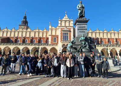Następnie uczniowie przeszli Traktem Królewskim podziwiając Kościół Św. Floriana, Barbakan, Bramę Floriańska, Kościół Mariacki, Pomnik Adama Mickiewicza, Sukiennice, wieżę Ratuszową.
